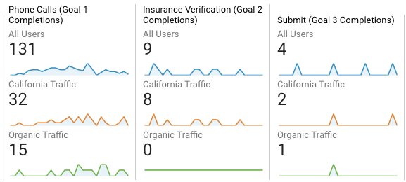 Peak data is provided for the call volume since launch (early Jun – Nov 2018) – Averaging 22 inbound monthly phone calls via the site & 2 contact form submissions (primarily verification of benefits inquiries) per month. Data provided by, and site health managed in the interim, by Dreamscape Marketing, LLC as designated agency of Fiduciary ABC services.